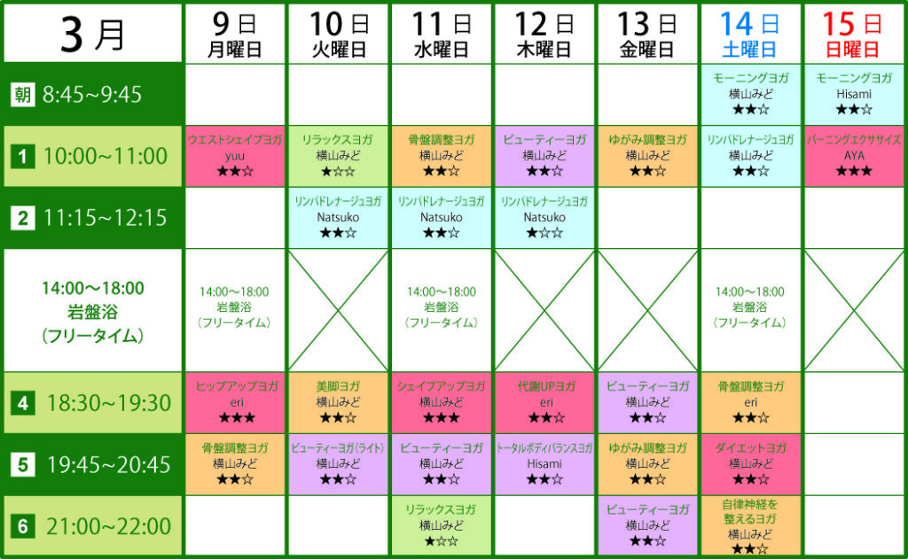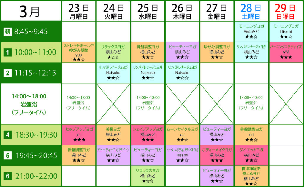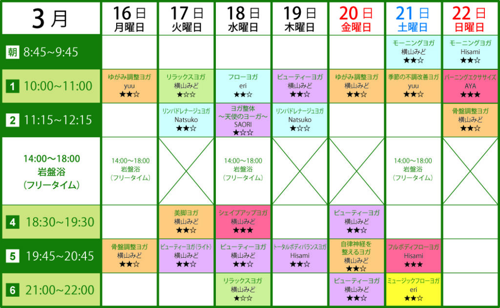ヨガレッスンスケジュール